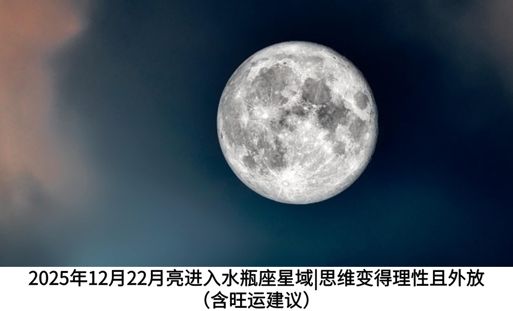 在2025年12月22日,晚上23:52,月亮进入水瓶座星域,这一变化带来情绪与人际互动的显著想象。你的情感和表达以及思考方式会变得理性,带有水瓶座的特质:独立、创新、同时渴望自由与空间。
