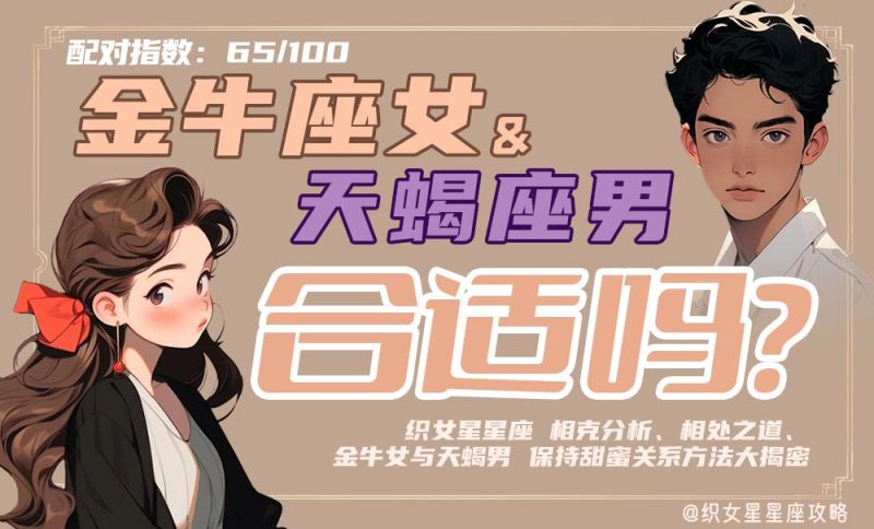 金牛座女和天蝎座男的配对指数是65/100